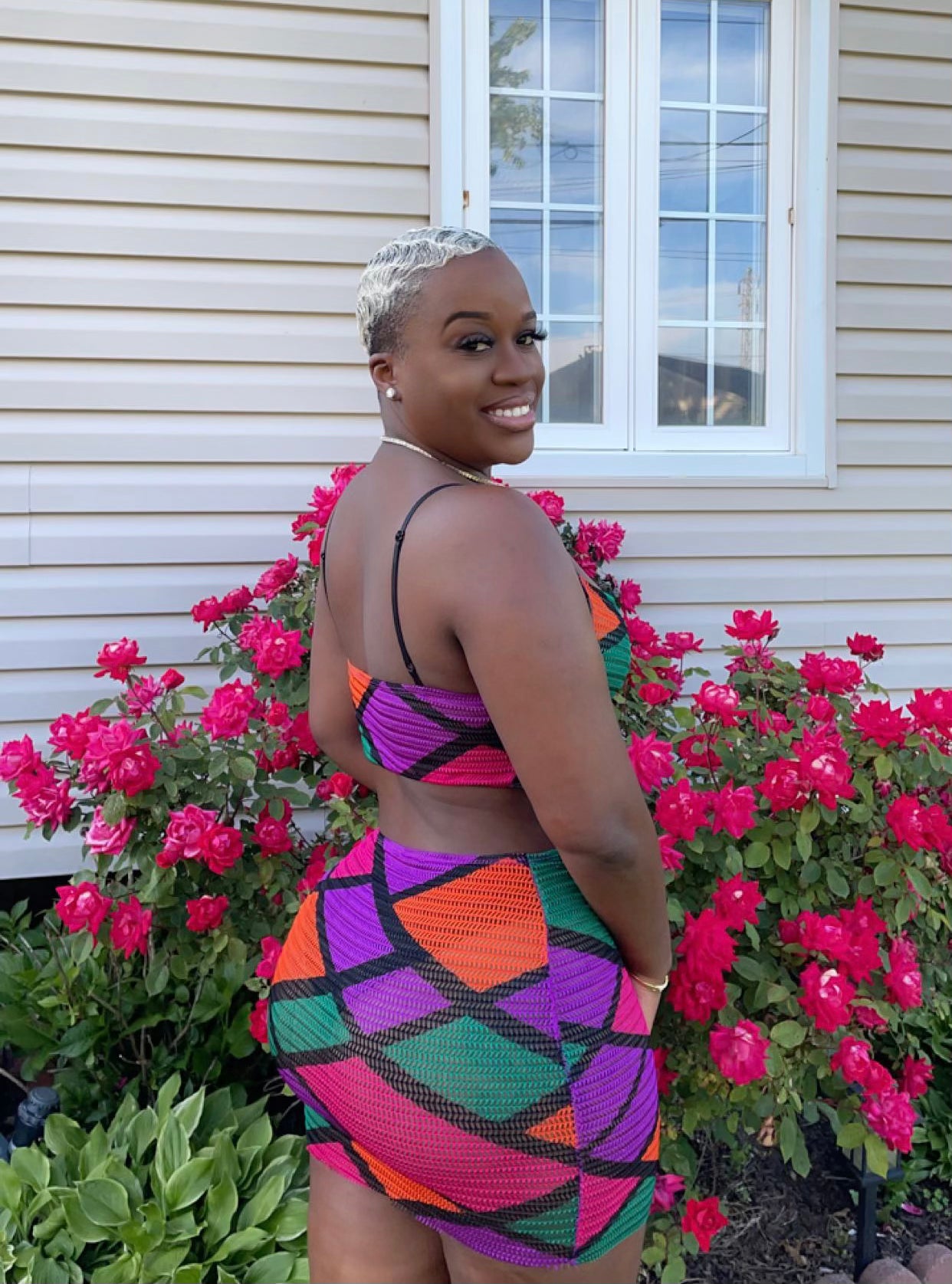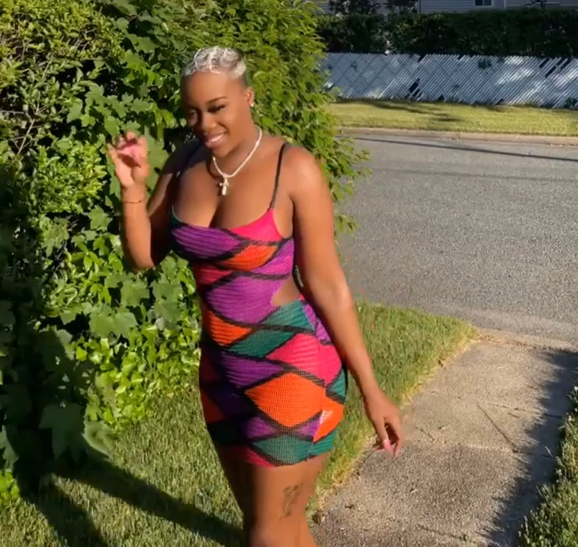 Multi color mini dress with spaghetti strap